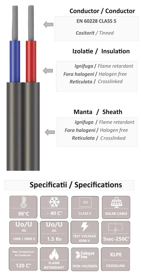 Etichetă: Cablu Solar 2X4mm - Tambur 250m Negru