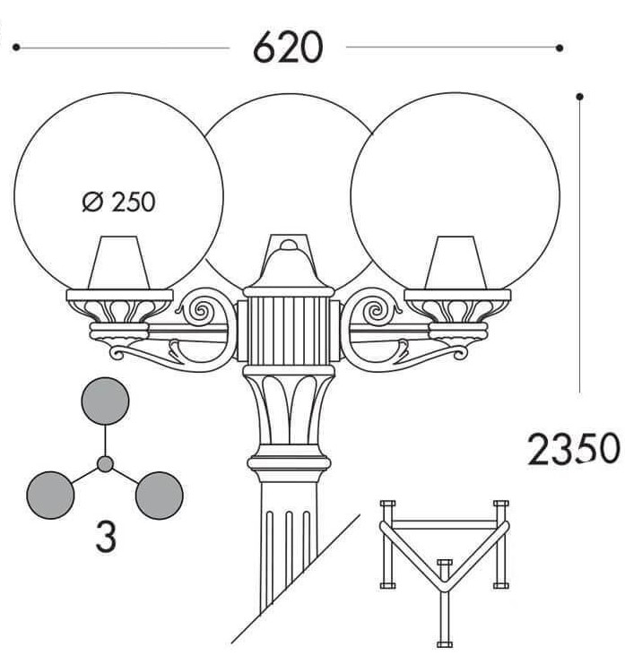 STALP DE ILUMINAT ORNAMENTAL FUMAGALLI 2M + 3 GLOBURI 250MM